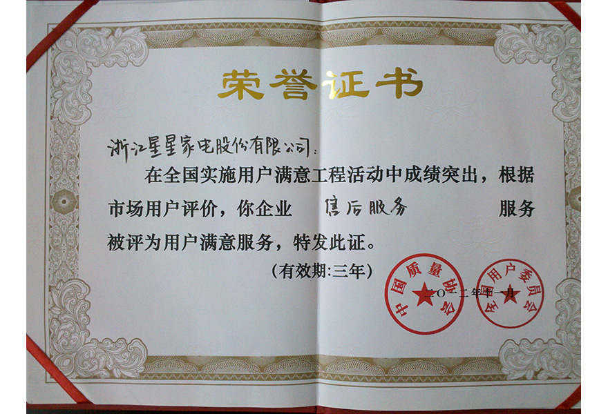 201211 用戶滿意服務(wù) 證書