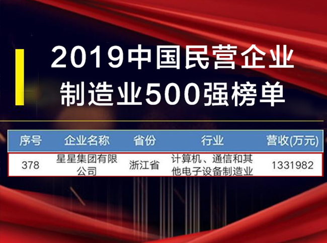 8月22日,全國工商聯(lián)在青海省西寧市發(fā)布2019中國民營企業(yè)制造業(yè)500強(qiáng)榜單,星星集團(tuán)榜上有名。