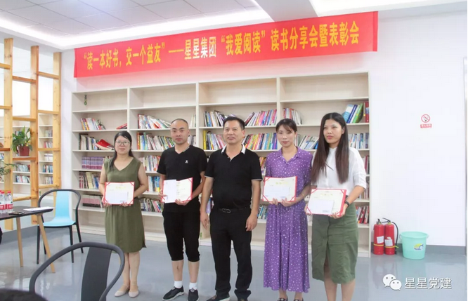 在讀書分享活動開始之前,星星集團黨委書記陳華明分別對“我愛閱讀”活動讀后感撰寫和好文摘抄的獲獎人員進行了頒獎。
